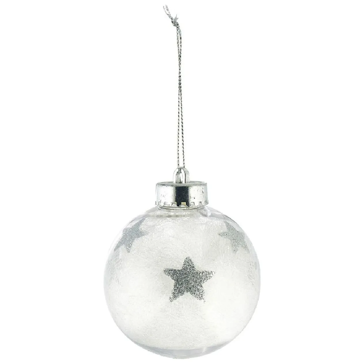 Boule de Noël transparente garnie de tulle et imprimée d’étoiles.