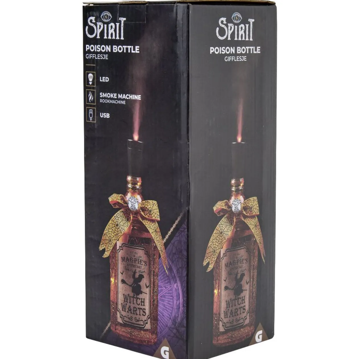 Une bouteille en verre faisant de la fumée connectée à une LED par port USB. Idéal pour décoration d’Halloween.