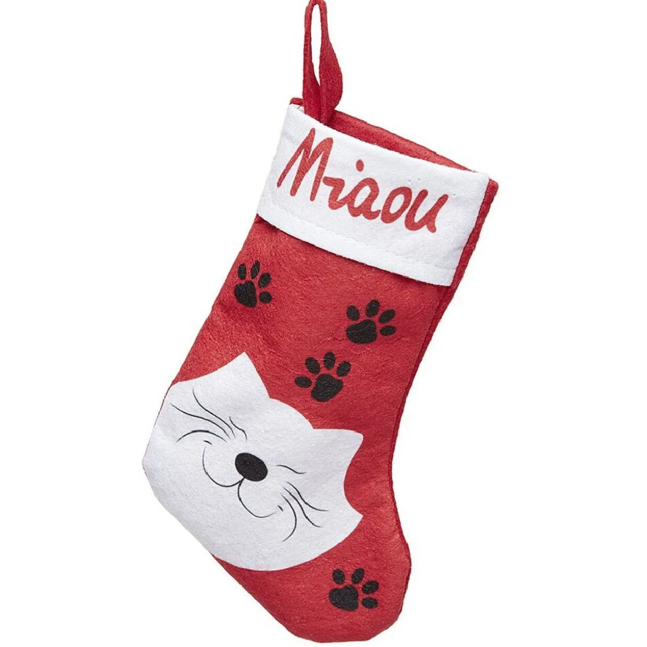 Suspension en forme de chaussette de Noël avec chat pour une décoration chaleureuse