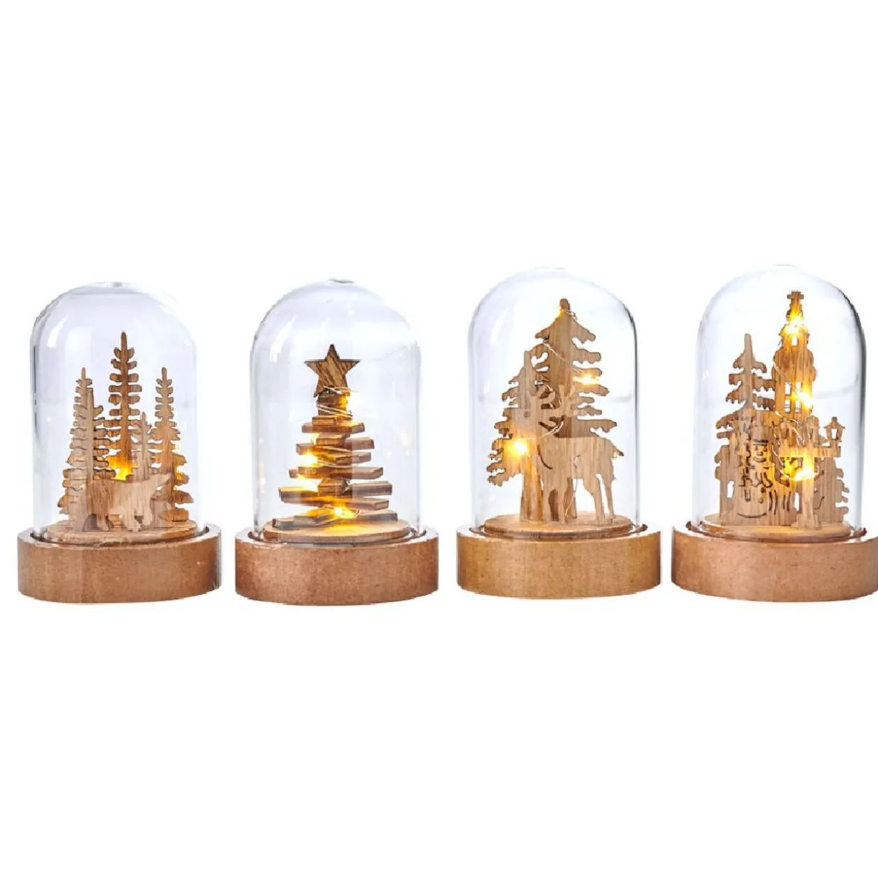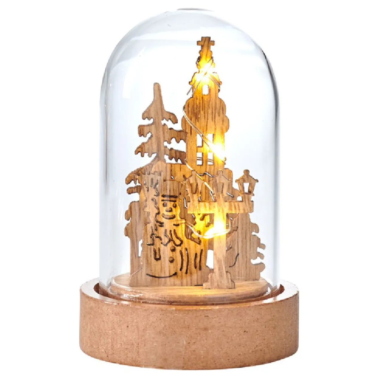 Cette décoration sous cloche est l’objet déco idéal pour instiller la magie de Noël dans votre intérieur. Fabriquée en plastique transparent, elle renferme une figurine au thème de Noël, illuminée par 3 à 10 LED selon le modèle. Elle est dotée d’un design simple que vous pouvez accessoiriser avec une déco scandinave, moderne ou vintage. Cette déco sous cloche est facile à poser grâce à sa base en bois.