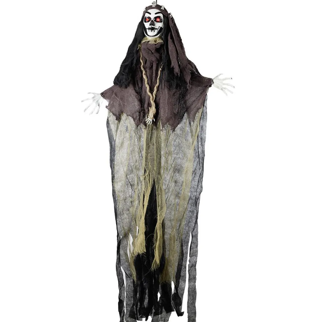Cette femme vaudou à suspendre est l’élément indispensable pour un Halloween assurément effrayant. Vous pourrez l’accrocher à une poutre, un avant-toit ou devant votre porte, vos invités et chasseurs de sucreries auront de quoi se mettre dans l’ambiance !