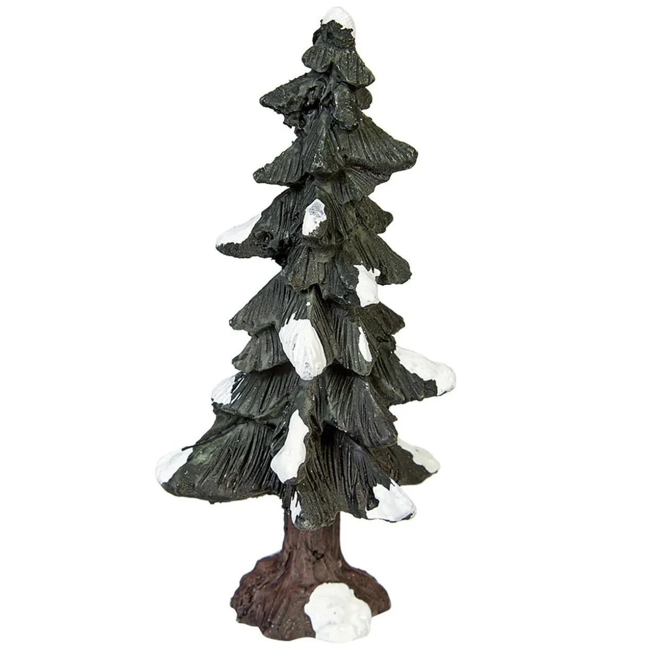 Ce lot de 9 figurines comprend 3 sapins verts enneigés, quelques personnages jouant et discutant sur une base stable à effet neige, et deux lanternes.