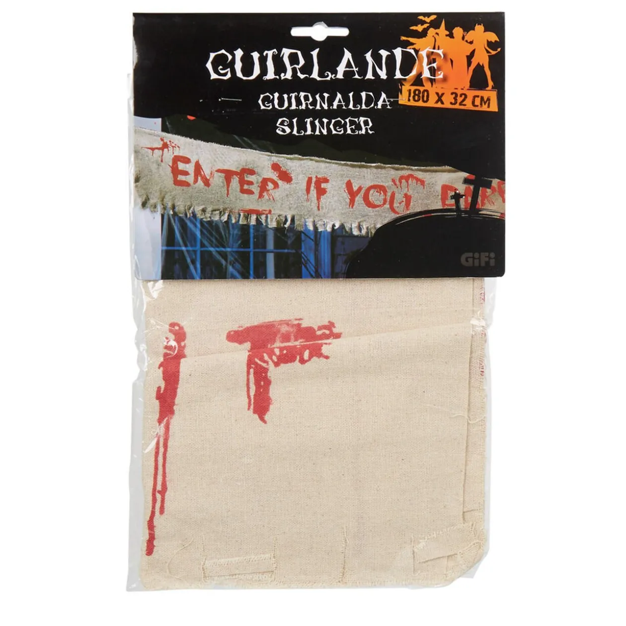 Cette Guirlande avec inscription ensanglantée en anglais de 1,8 m de longueur est parfaite pour la déco de Halloween et de vos soirées sur le thème de l’horreur.