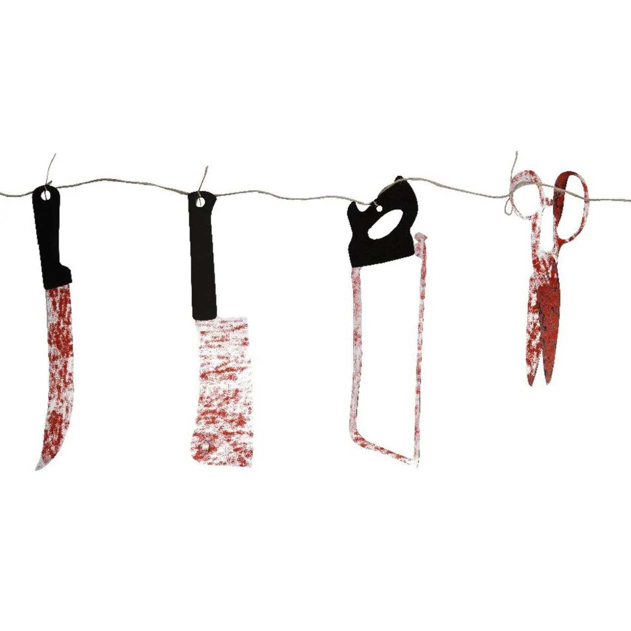 Cette guirlande de couteaux ensanglantés de 2,30 m de longueur est parfaite pour la déco de Halloween ou de vos soirées sur le thème de l’horreur.