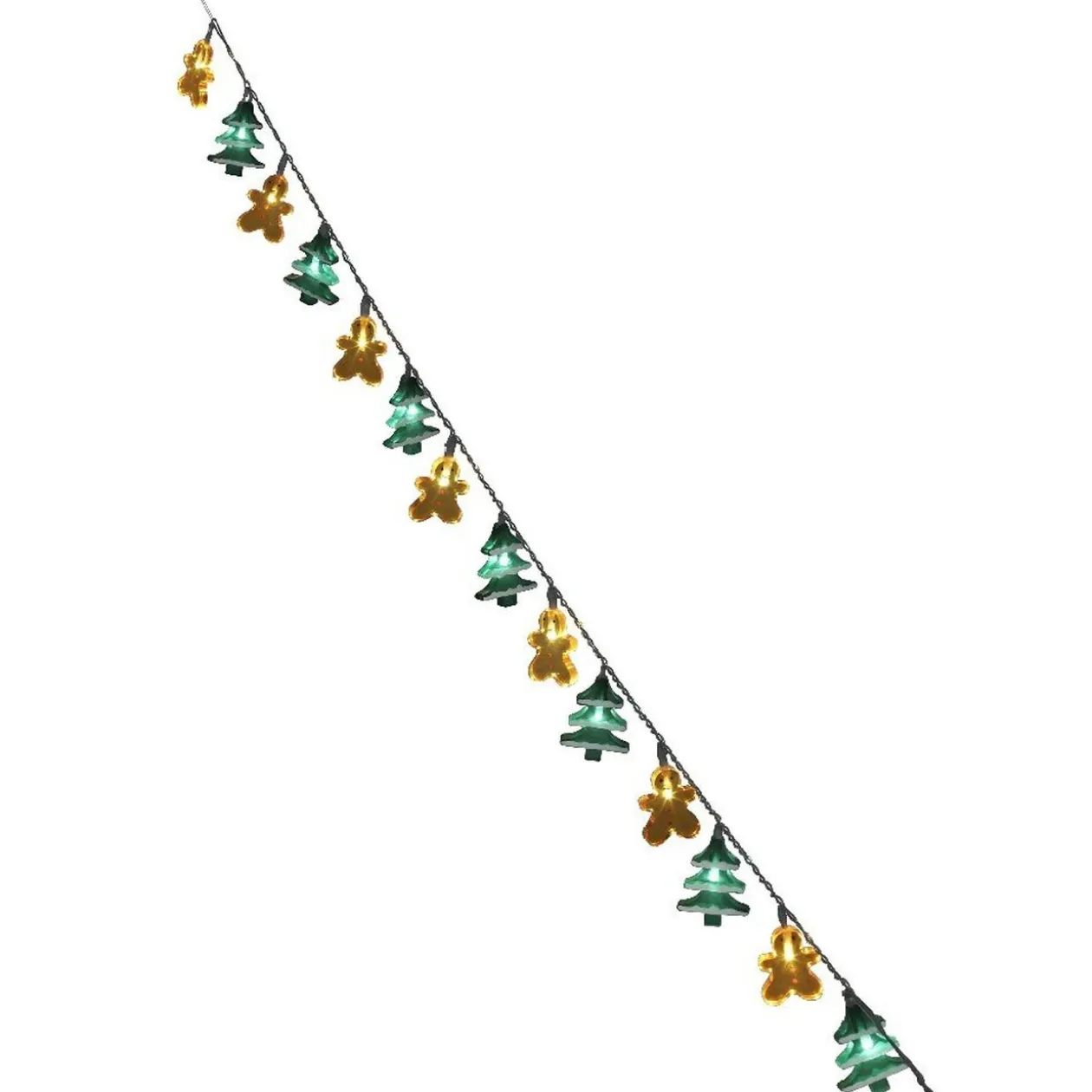 Guirlande électrique sapins verts et pain d’épices oranges, 1 m d’éclairage, 14 leds blanches fixes.