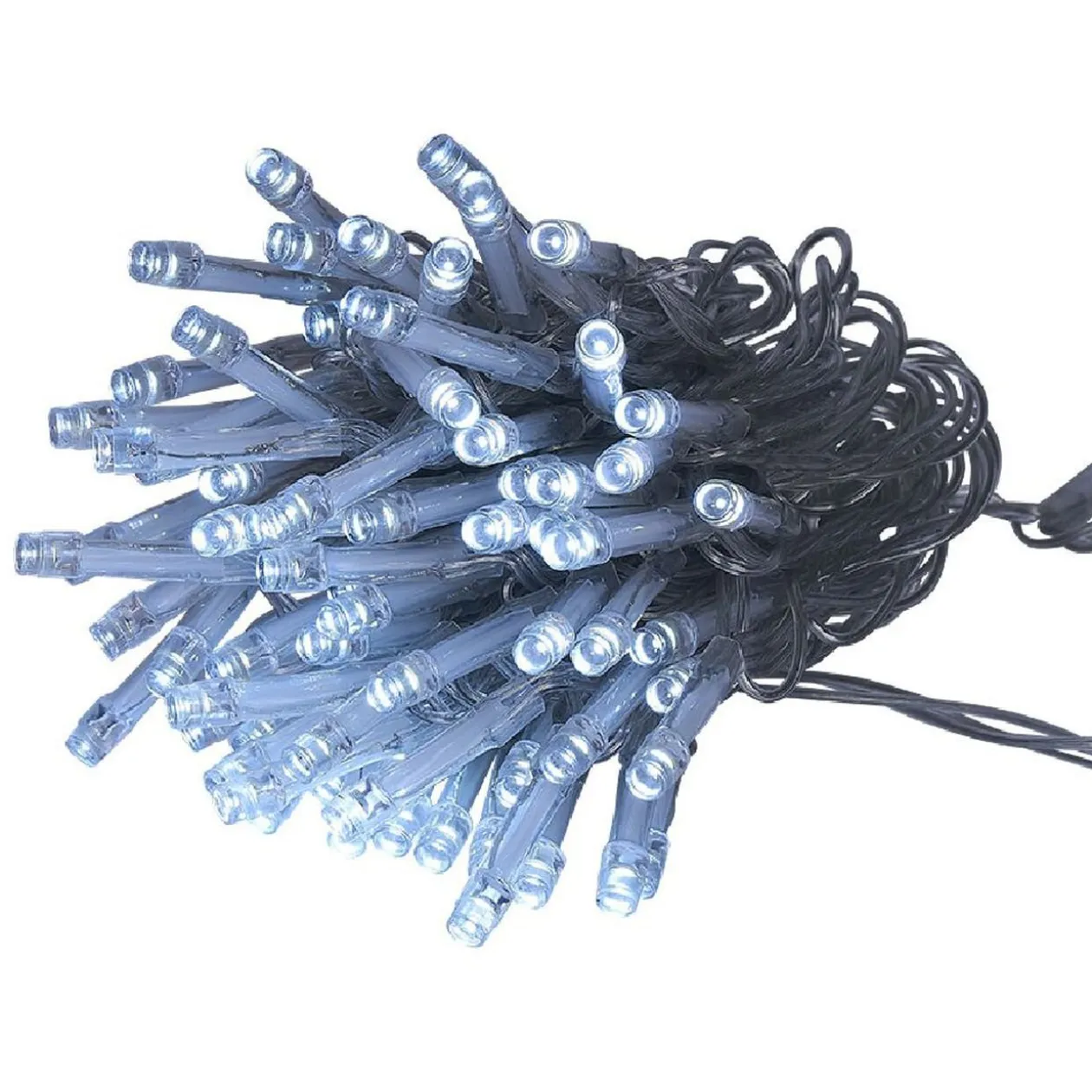 Guirlande lumineuse solaire avec une lumière blanc froid à installer en extérieur pour illuminer votre façade extérieure en période de Noël.