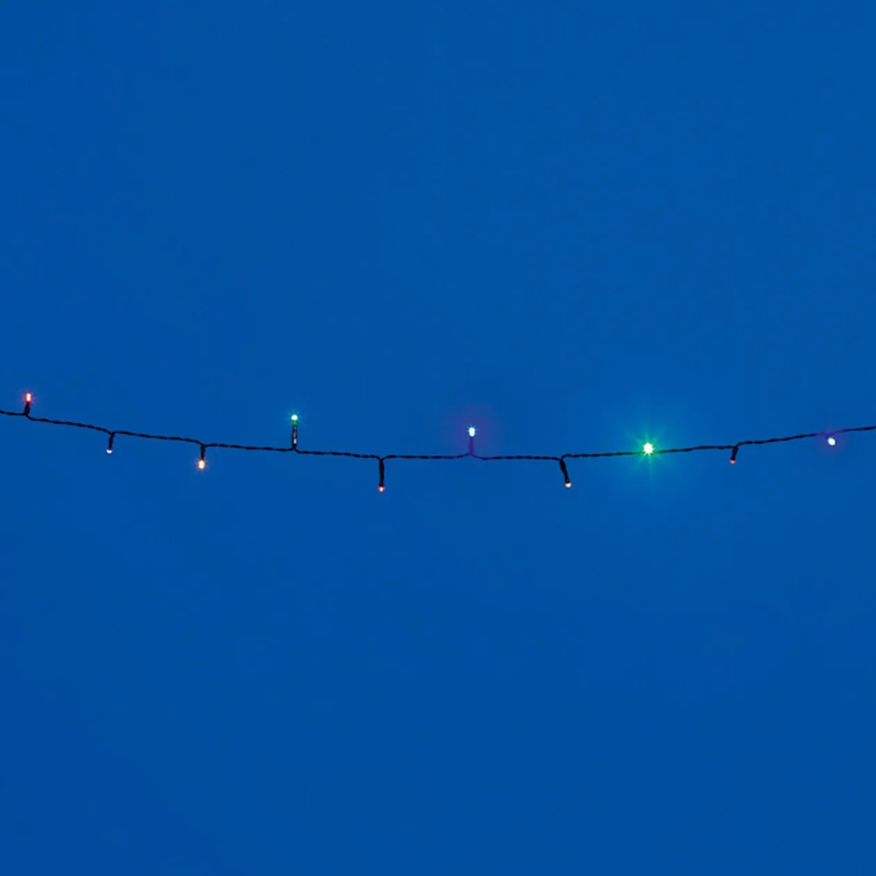 Guirlande électrique solaire offrant 5,9 m d’éclairage et 2 jeux de lumière avec ses 50 LEDs multicolores.