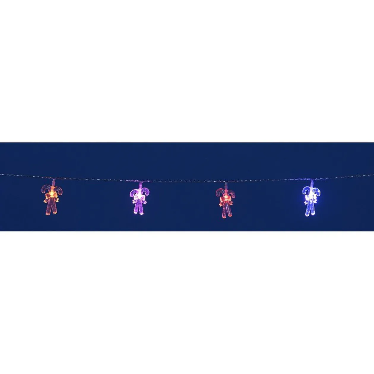 Guirlande électrique sucres d’orge L. 2,1 m, 15 leds multicolores, plastique. Câble de 20 cm de longueur.