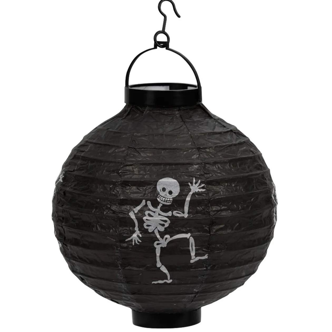 Lanterne lumineuse à suspendre de forme ronde, idéale comme décoration d’Halloween.