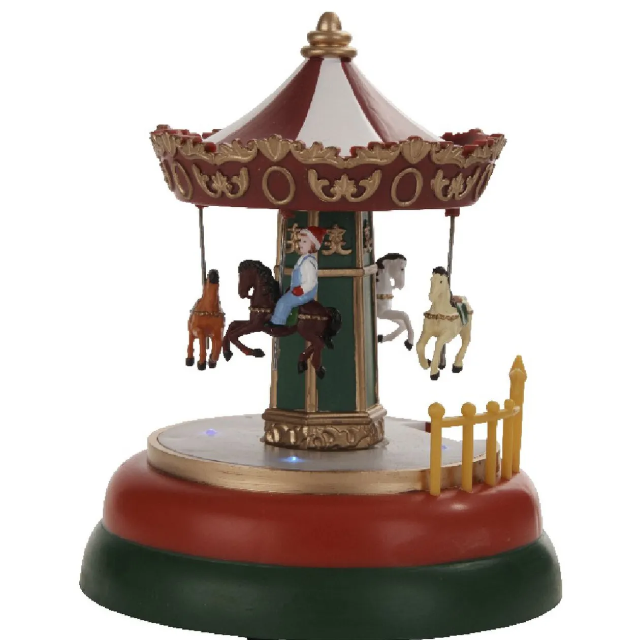 Manège animé et lumineux multicolore. Dim. 14,5×11,5×11,5 cm, résine.