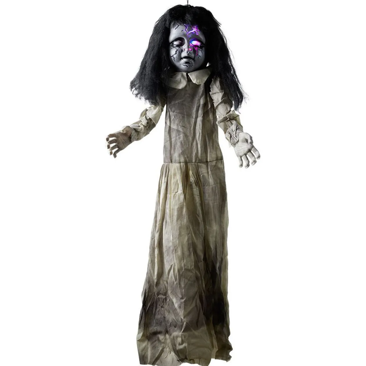 Cette petite fille à la tête craquelée est l’élément indispensable pour un Halloween assurément effrayant. Vous pourrez l’accrocher à une poutre, un avant-toit ou devant votre porte, vos invités et chasseurs de sucreries auront de quoi se mettre dans l’ambiance !