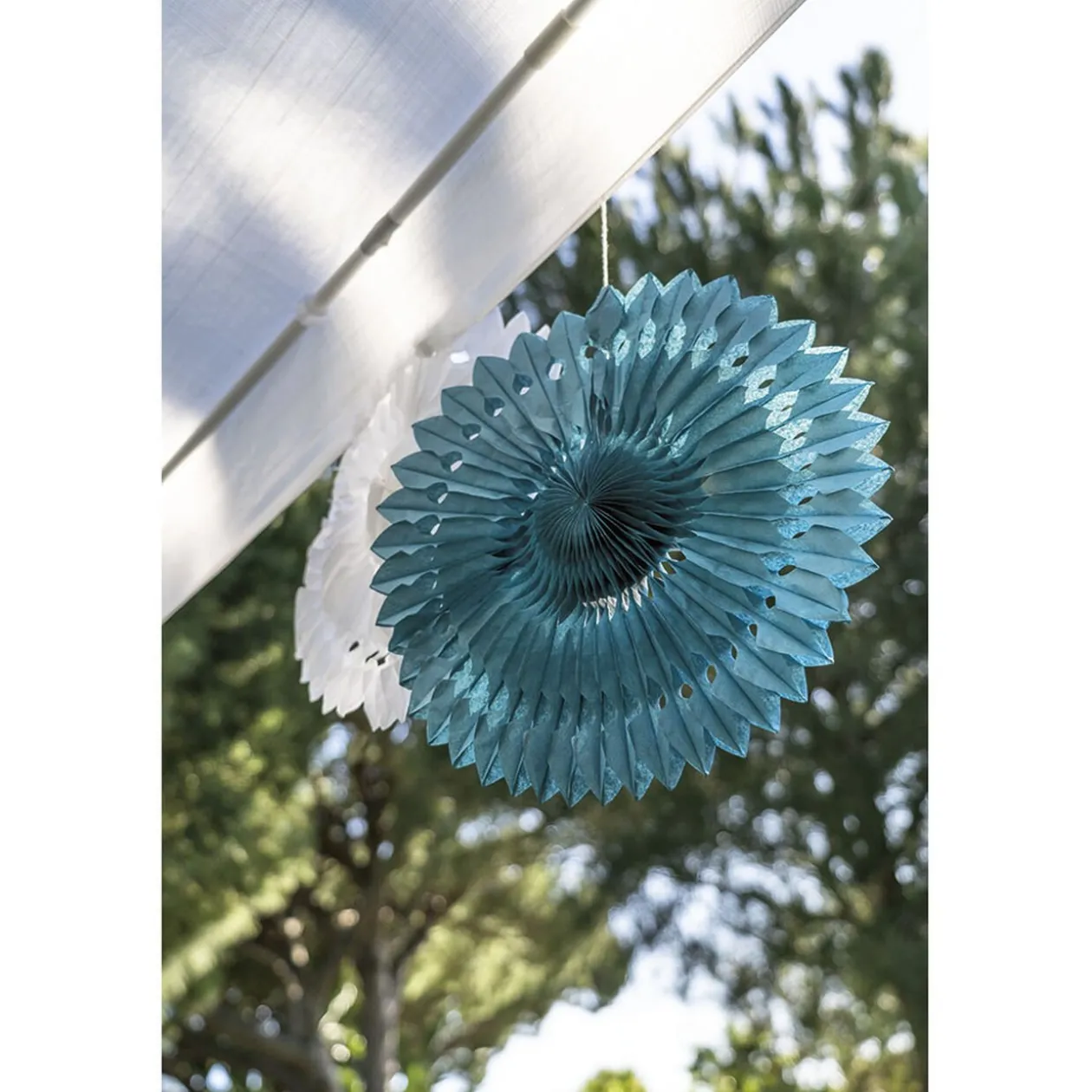 Rosace blanche à suspendre, idéale pour une festivité sur le thème bohème.