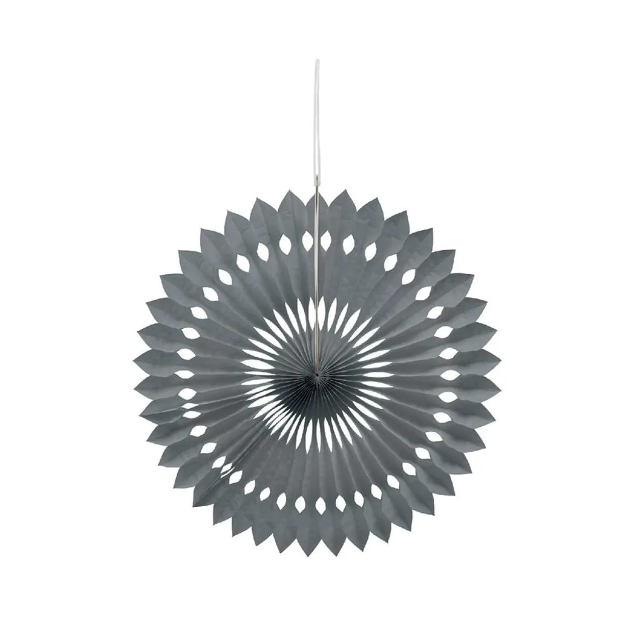 Privilégiez une décoration légère et originale avec cette rosace en papier gris à suspendre.