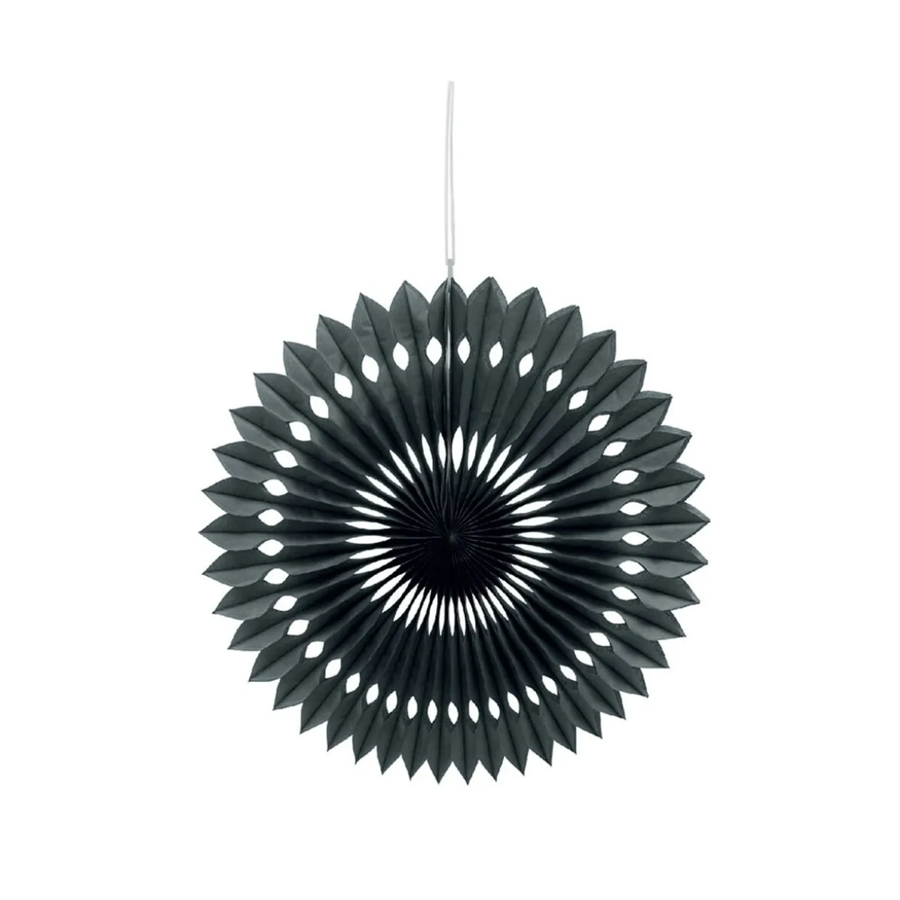 Optez pour une décoration légère et originale avec cette rosace en papier noir à suspendre.