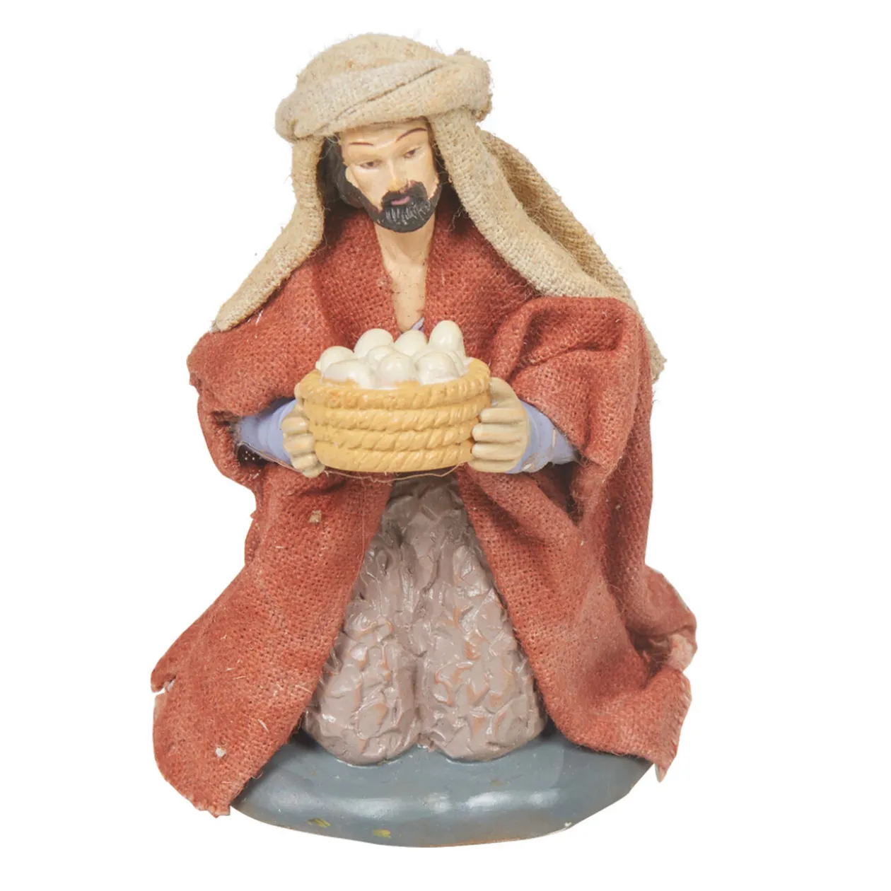 Ajoutez à votre crèche de Noël le commerçant du village tenant un panier d’oeufs dans les mains !