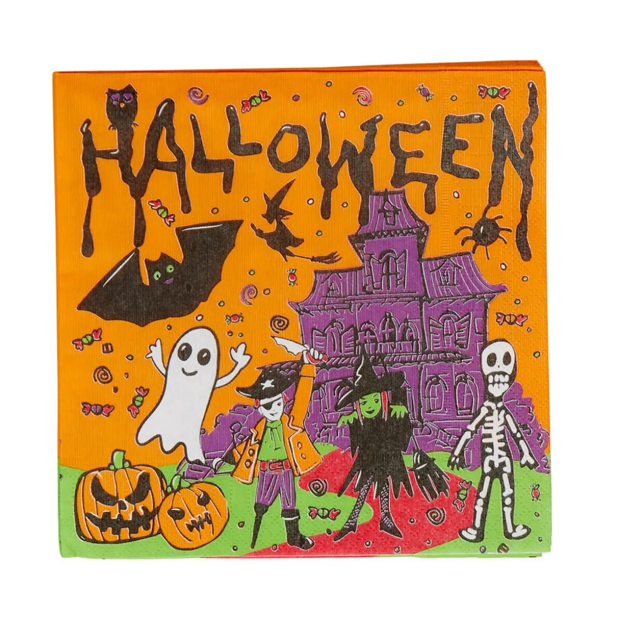 10 serviettes jetables orange à motifs pour votre décoration de tableHalloween.