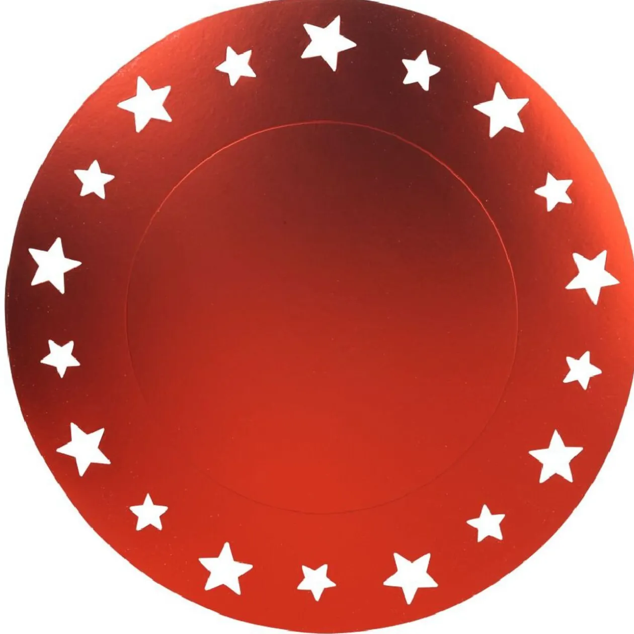 Lot de 4 sous-assiettes en carton rouge à motif étoile ajouré, pour habiller votre table d’une touche festive pour Noël.