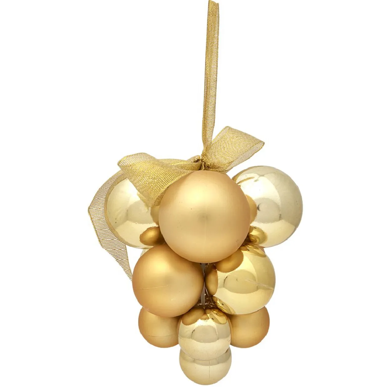 Suspension de Noël avec diverses boules formant une grappe de couleur dorée. Idéale pour décorer votre sapin, ou bien une porte !