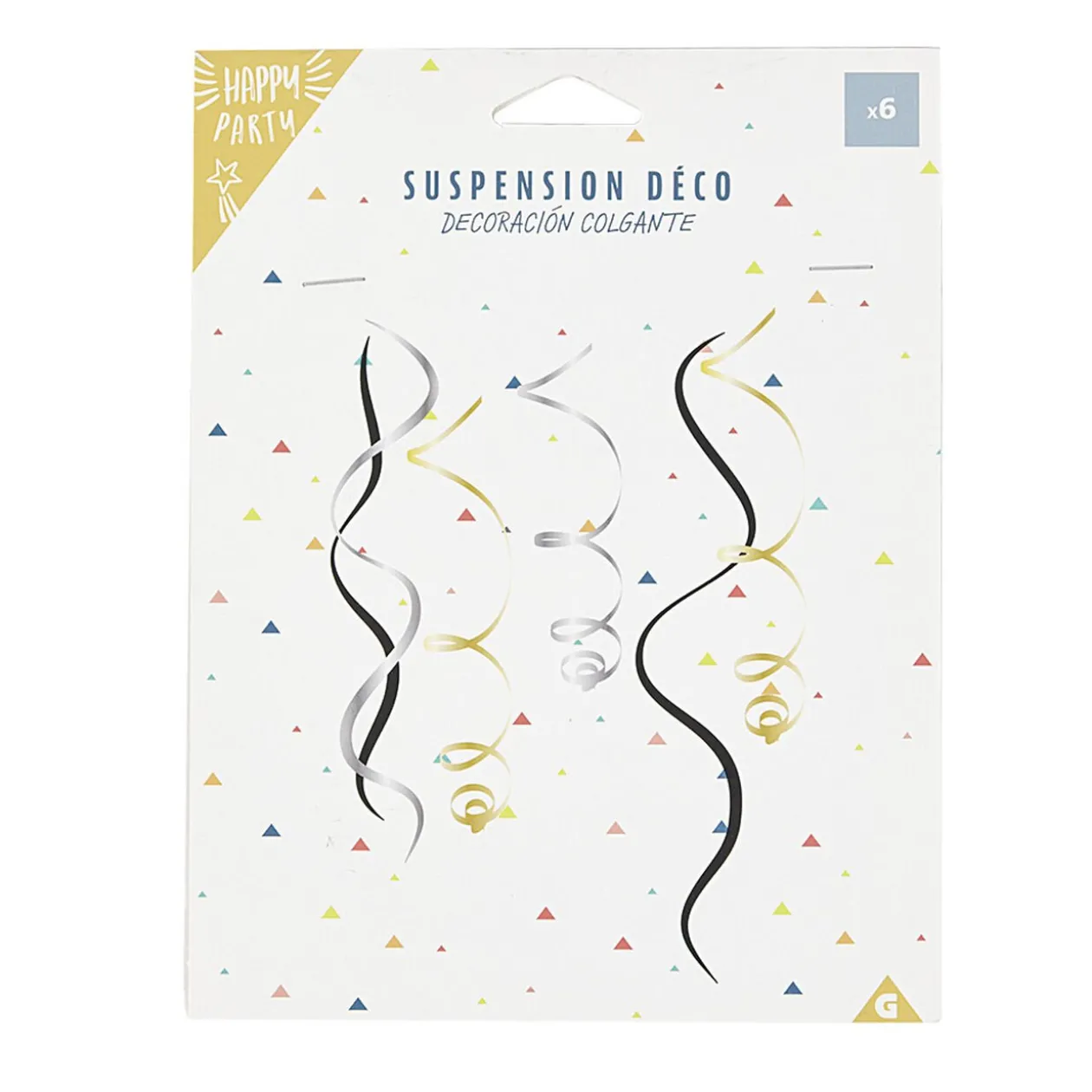 Suspension à spirales en papier de couleur noir, argenté et doré.
