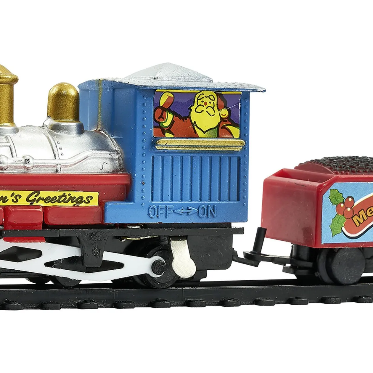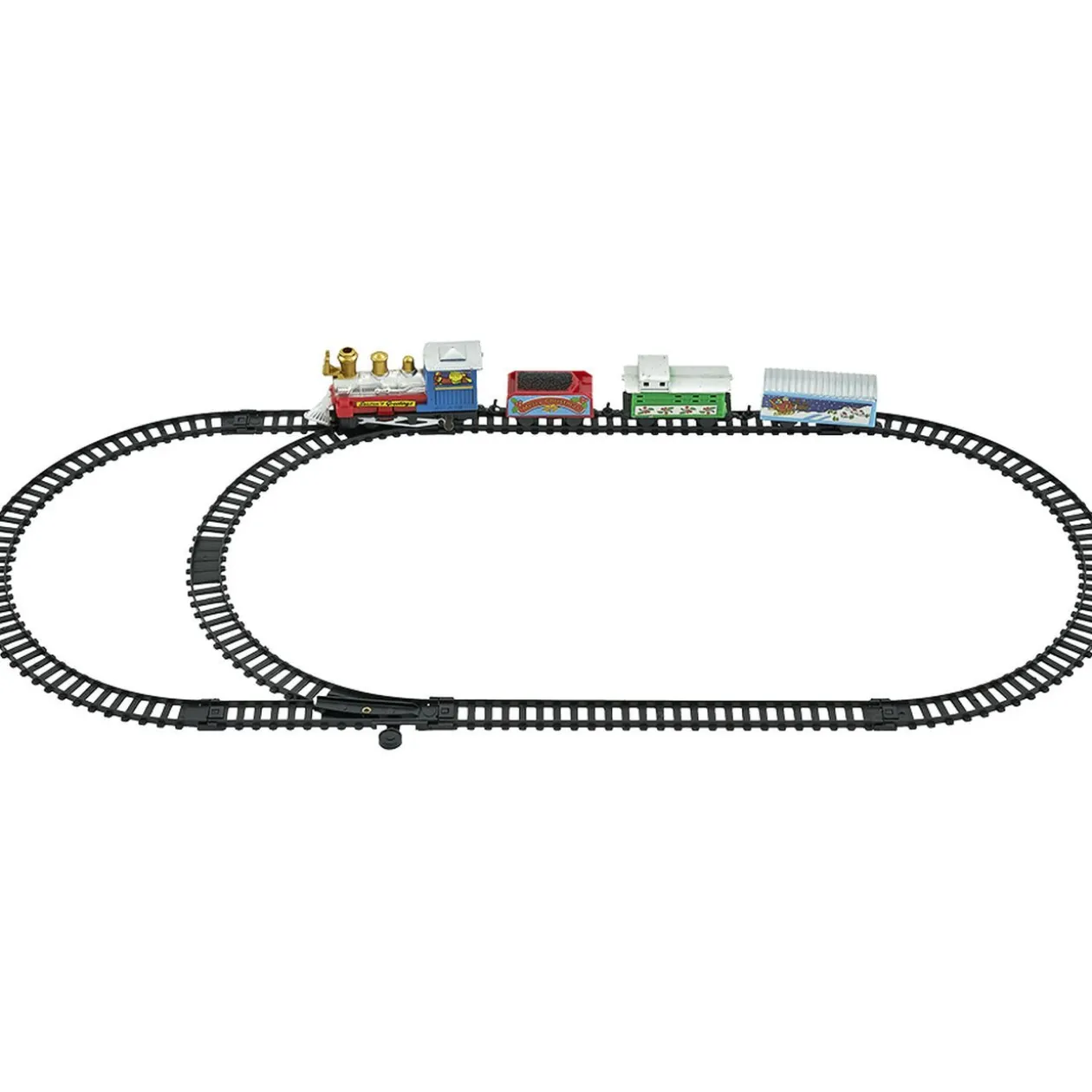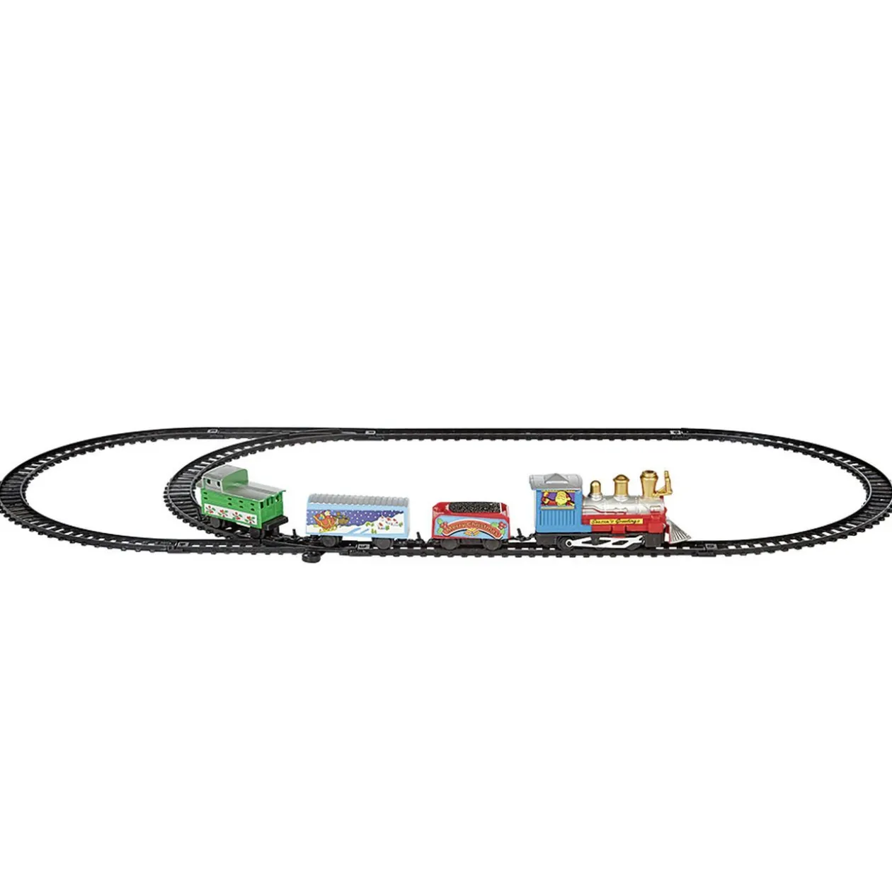 Train de Noël électrique composé de 4 wagons et 1 circuit de rails.