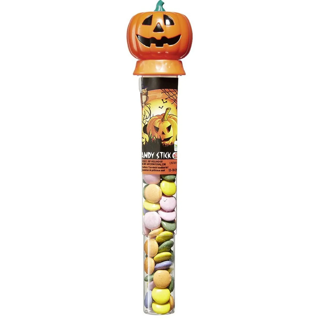 Tube citrouille contenant des confiseries chocolatées