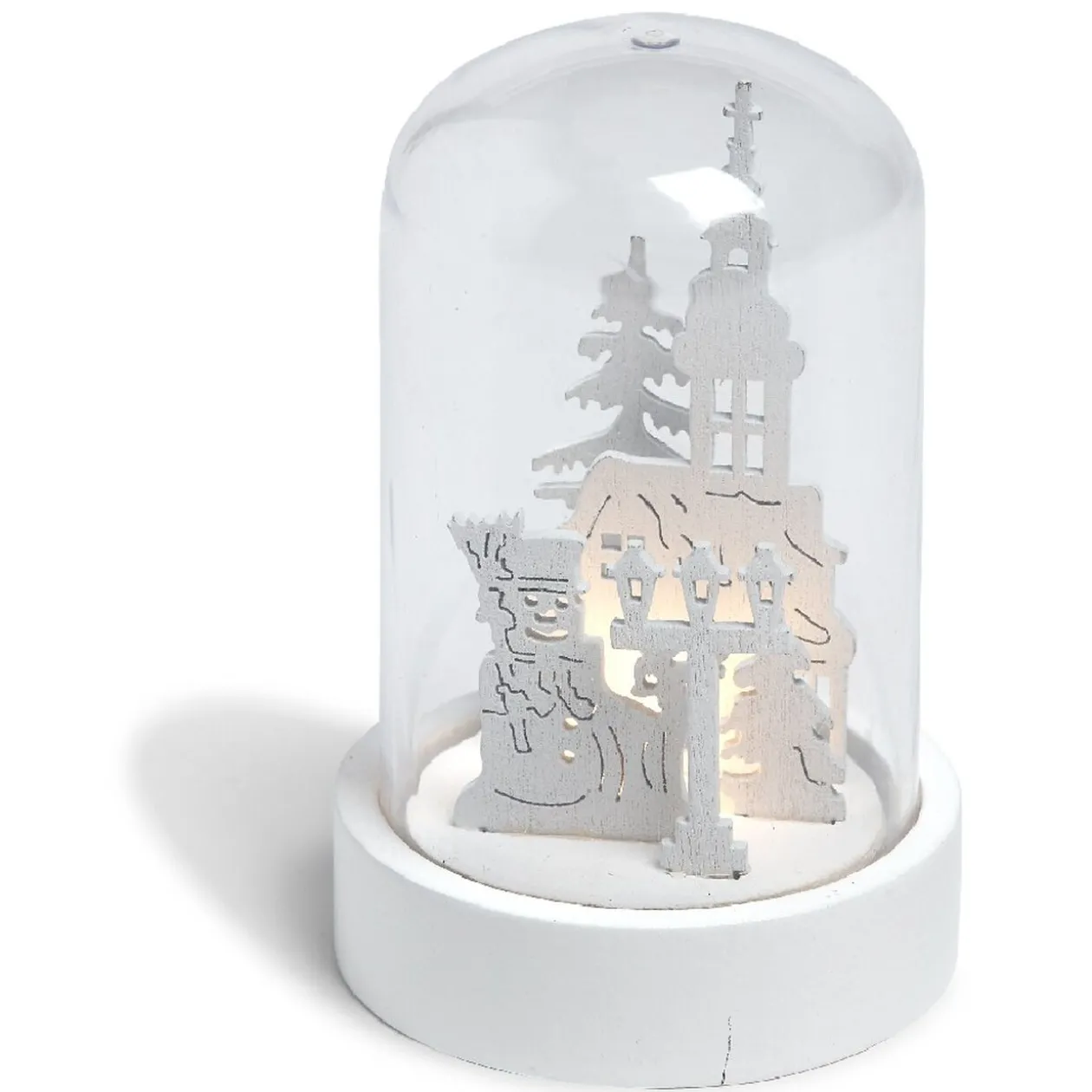 Craquez pour ce village miniature dans sa boîte transparente. Elle est fabriquée en bois blanc et décorée avec une maison, un clocher, un bonhomme de neige et un sapin. La maison est dotée de fenêtres éclairées par 1 lampe LED qui se trouve à l’intérieur. Cette décoration de Noël apporte une ambiance chaleureuse dans votre foyer. Elle trouve facilement sa place sur votre table de fête ou sur votre buffet.